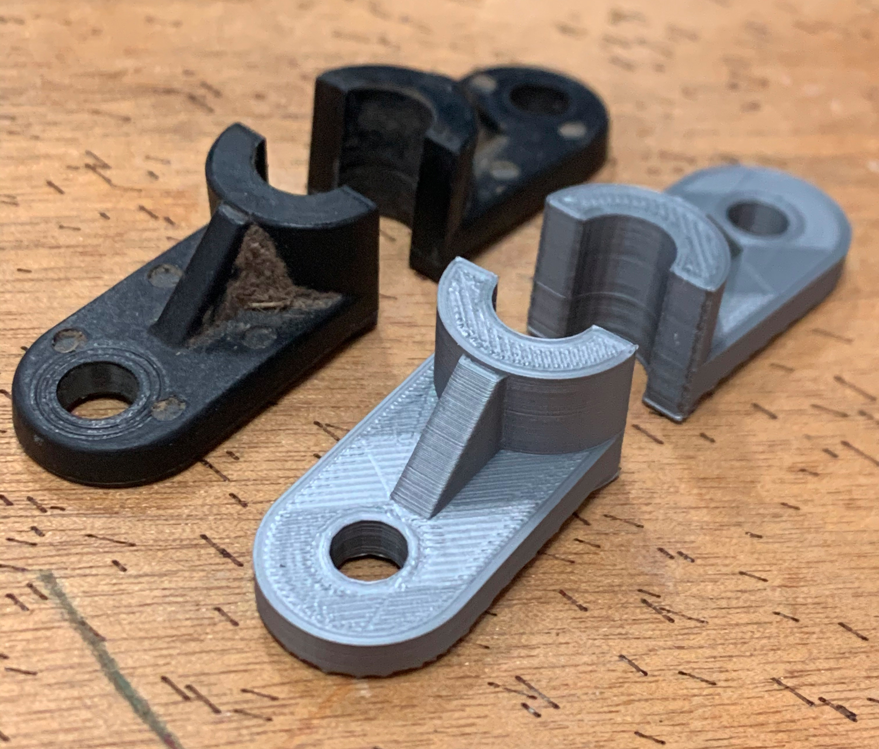 Tout type de pièce plastique usée, voire même cassée (ne jetez pas les morceaux) peut être modélisée sur ordinateur et ensuite imprimée.